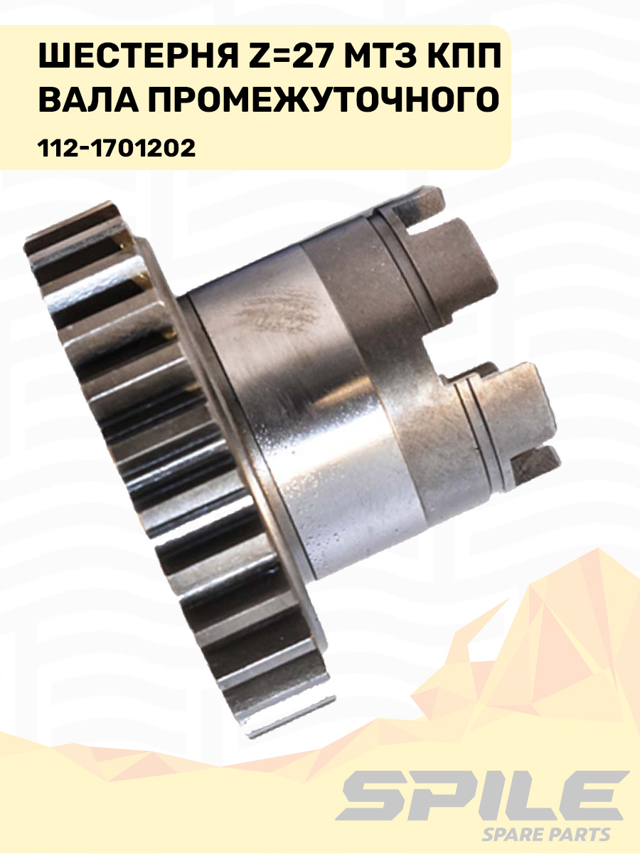 Шестерня промежуточного вала коробки передач. Устанавливается на промежуточный вал КПП, которая передает вращение (через эту и другие шестерни) к последующим зубчатым парам. Используется также как шестерня привода синхронного ВОМ (вал отбора мощности), когда она входит в цепочку передач КПП.