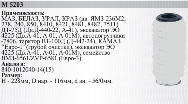 240-1017040-А4 (М5205К) DIFA Фильтр масляный (нетканное полотно)КОММЕНТ