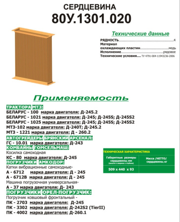80У.1301.020 Сердцевина МТЗ радиатора, 4 рядная (медь), РФ
