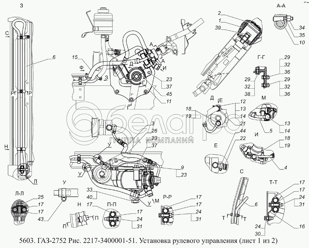 Каталог запасных частей к технике: ГАЗ-5603 (Евро 4). 2217-3400001-51 Установка рулевого управления