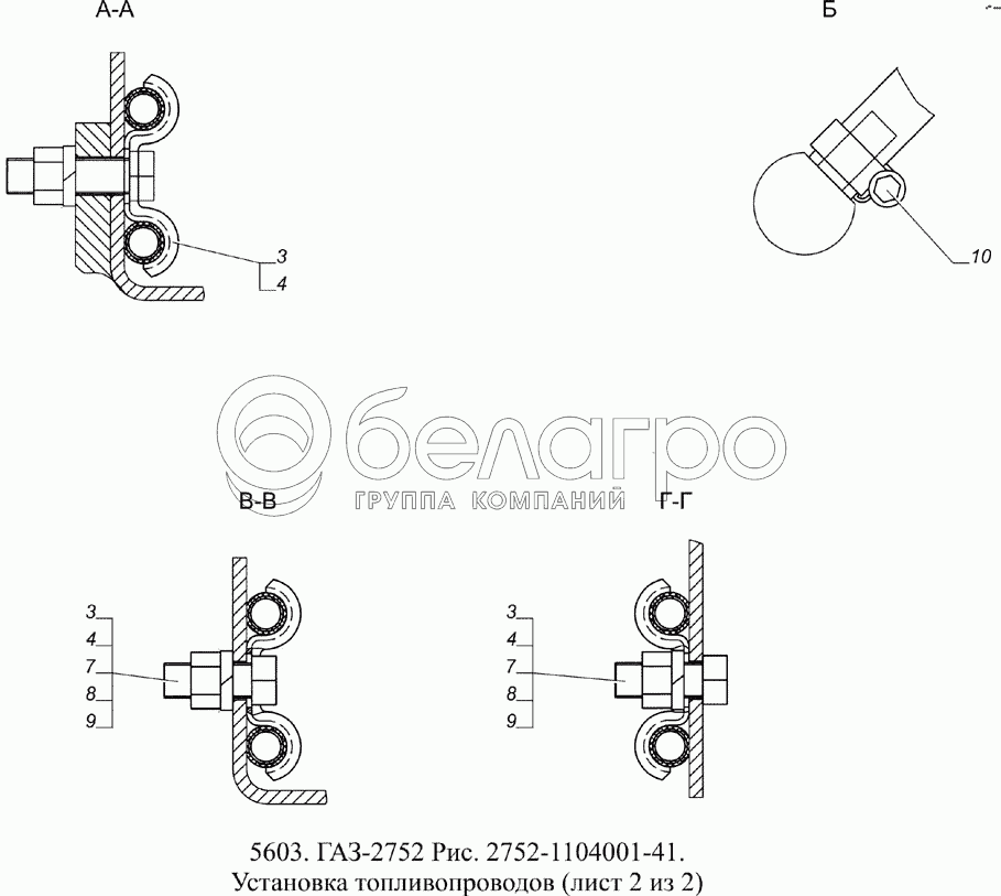 Каталог запасных частей к технике: ГАЗ-5603 (Евро 4). 2752-1104001-41 Установка топливопроводов