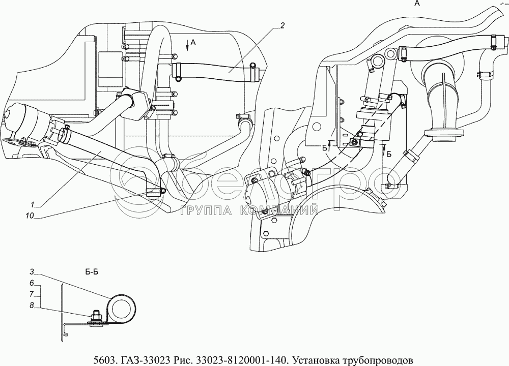 Каталог запасных частей к технике: ГАЗ-5603 (Евро 4). 33023-8120001-140 Установка трубопроводов