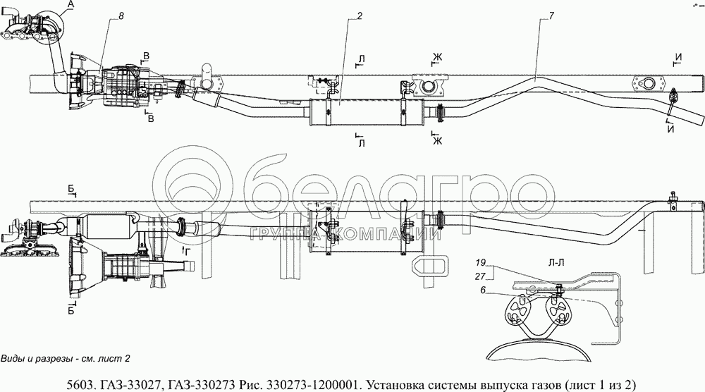 Каталог запасных частей к технике: ГАЗ-5603 (Евро 4). 330273-1200001 Установка системы выпуска газов