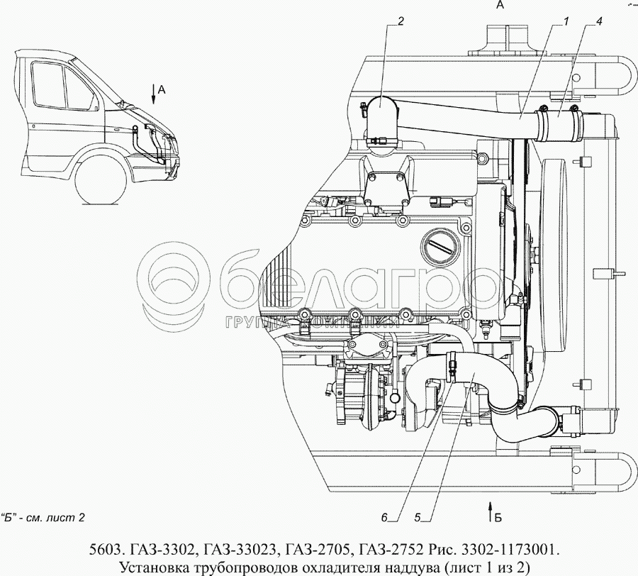 Каталог запасных частей к технике: ГАЗ-5603 (Евро 4). 3302-1173001 Установка трубопроводов охладителя наддува