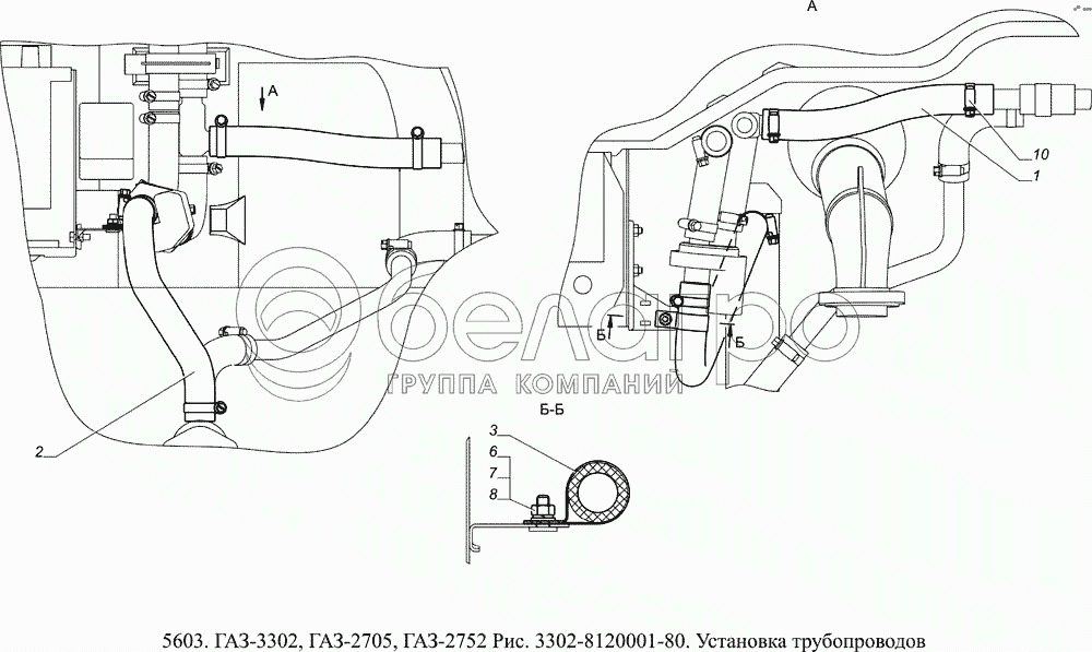 Каталог запасных частей к технике: ГАЗ-5603 (Евро 4). 3302-8120001-80 Установка трубопроводов
