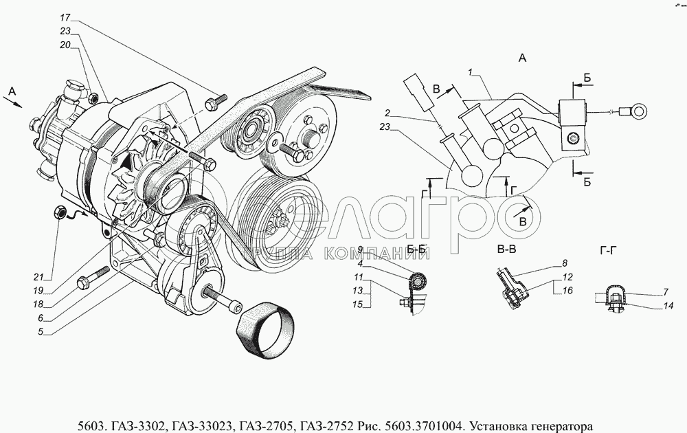 Каталог запасных частей к технике: ГАЗ-5603 (Евро 4). 5603.3701004 Установка генератора