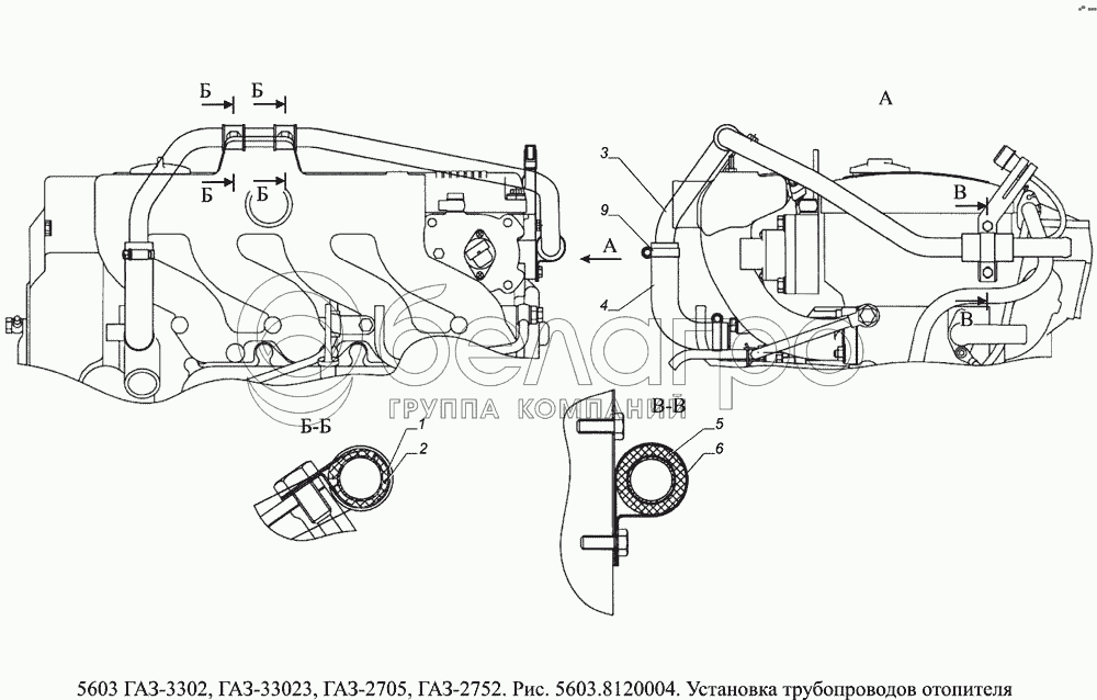 Каталог запасных частей к технике: ГАЗ-5603 (Евро 4). 5603.8120004 Установка трубопроводов отопителя