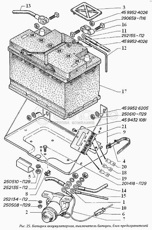 Каталог запасных частей к технике: ГАЗ-560. Батарея аккумуляторная, включатель батареи, блок предохранителей