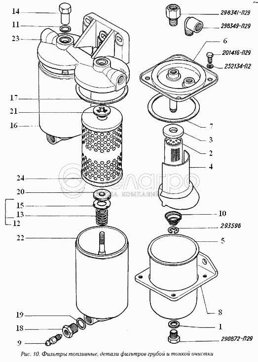 Каталог запасных частей к технике: ГАЗ-560. Фильтры топливные, детали фильтров грубой и тонкой очистки