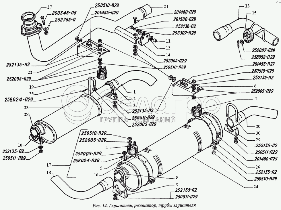 Каталог запасных частей к технике: ГАЗ-560. Глушитель, резонатор, трубы глушителя