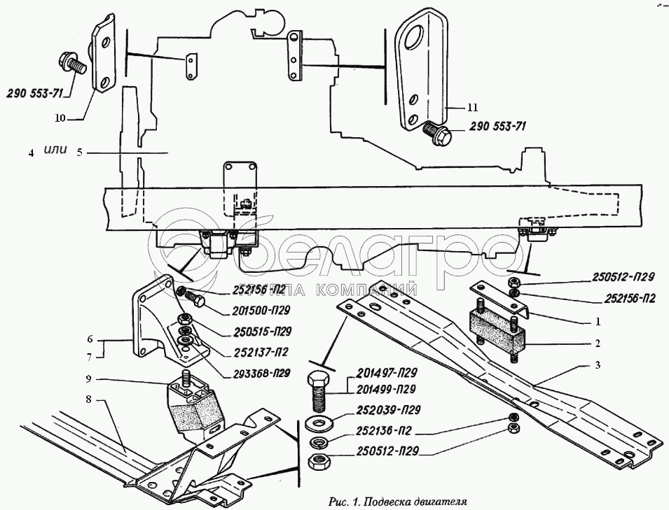 Каталог запасных частей к технике: ГАЗ-560. Подвеска двигателя