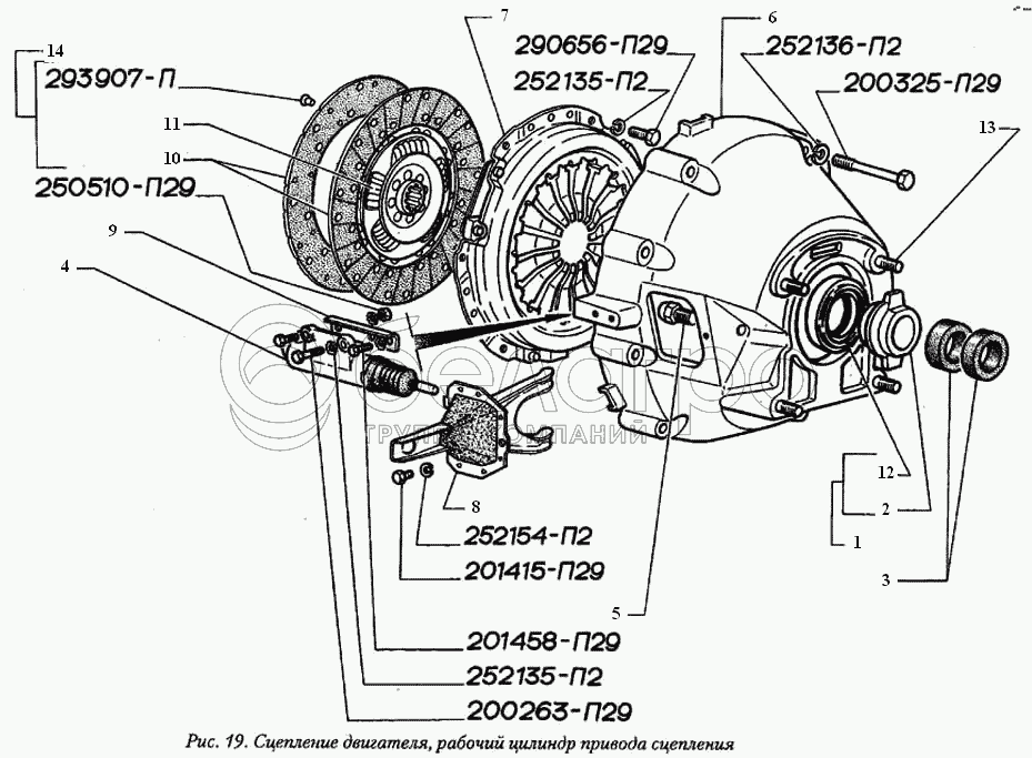 Каталог запасных частей к технике: ГАЗ-560. Сцепление, рабочий цилиндр привода сцепления