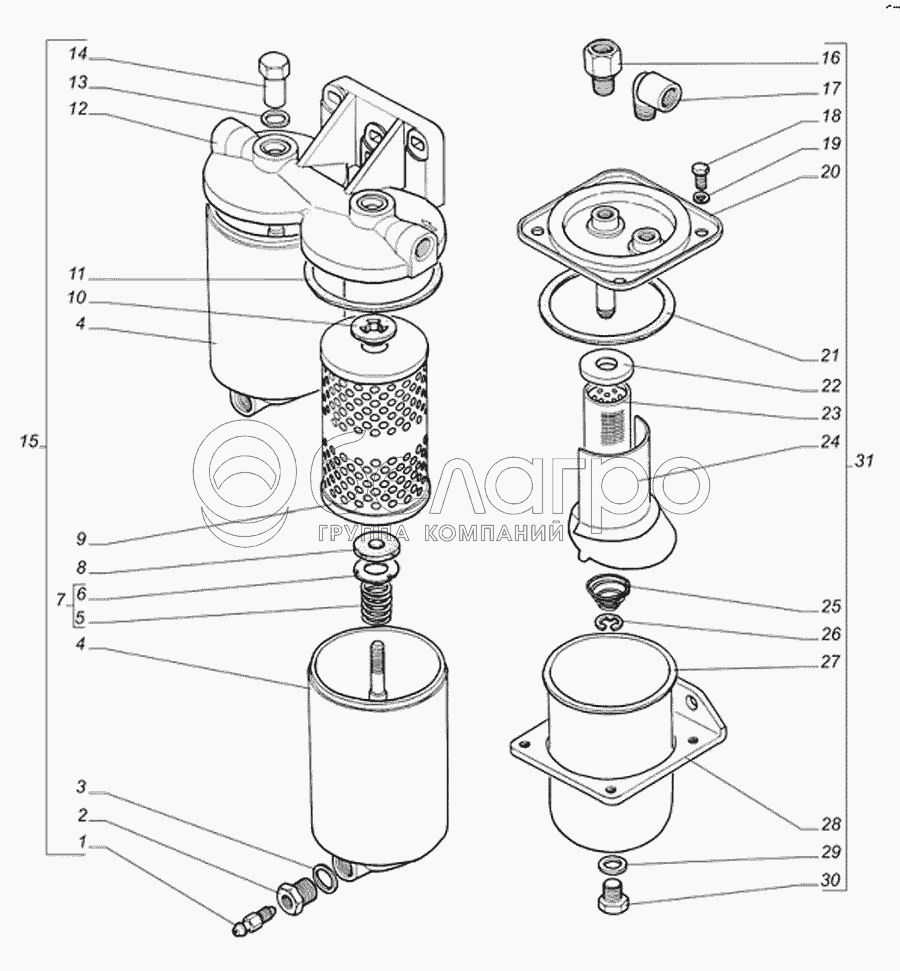 Каталог запасных частей к технике: ГАЗ-560. Фильтр тонкой очистки топлива, фильтр грубой очистки топлива