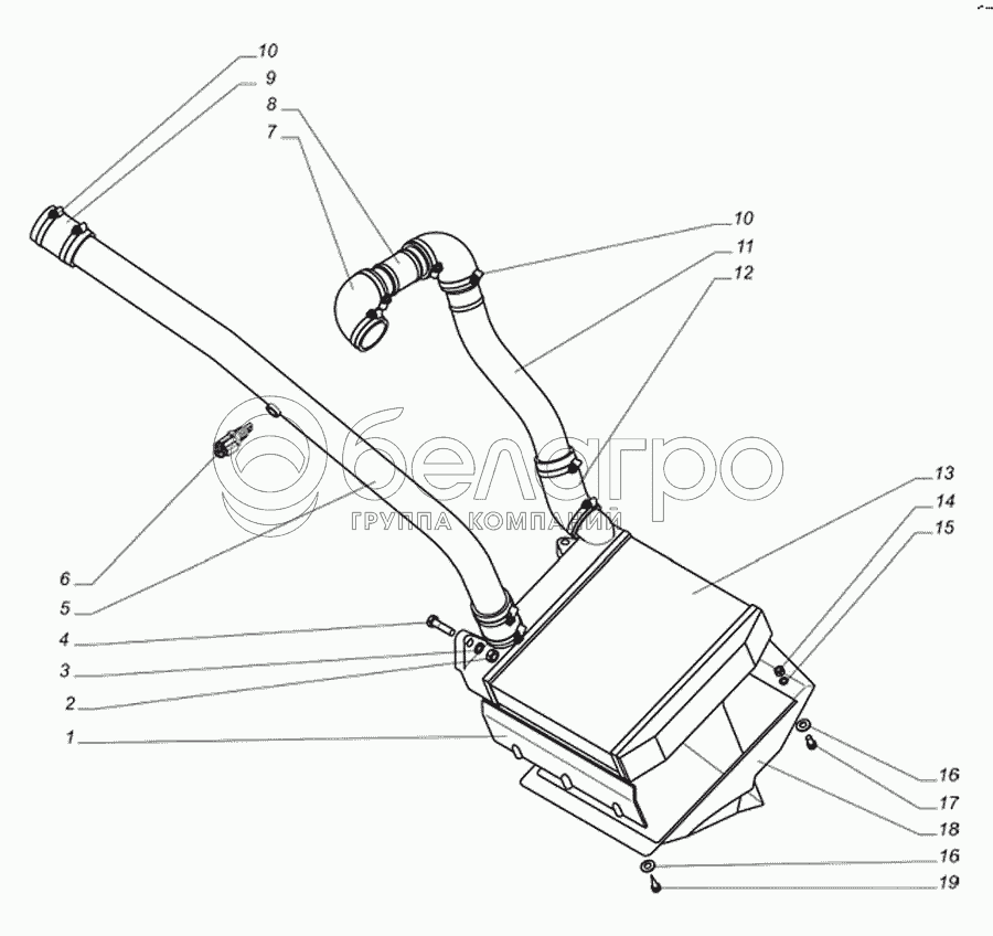Каталог запасных частей к технике: ГАЗ-560. Охладитель наддувочного воздуха с патрубками