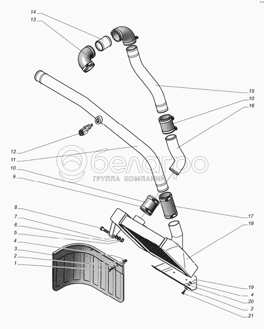 Каталог запасных частей к технике: ГАЗ-560. Охладитель наддувочного воздуха с патрубками, фартук заднего брызговика