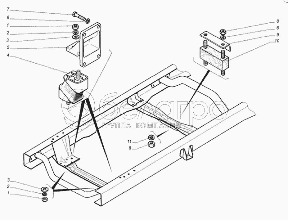Каталог запасных частей к технике: ГАЗ-560. Подвеска двигателя