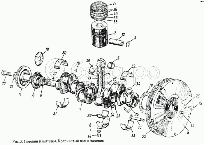 Каталог запасных частей к технике: ММЗ Д-242. Поршни и шатуны. Коленчатый вал и маховик