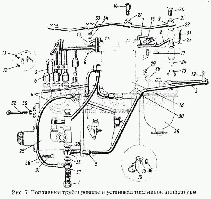 Каталог запасных частей к технике: ММЗ Д-242. Топливные трубопроводы и установка топливной аппаратуры