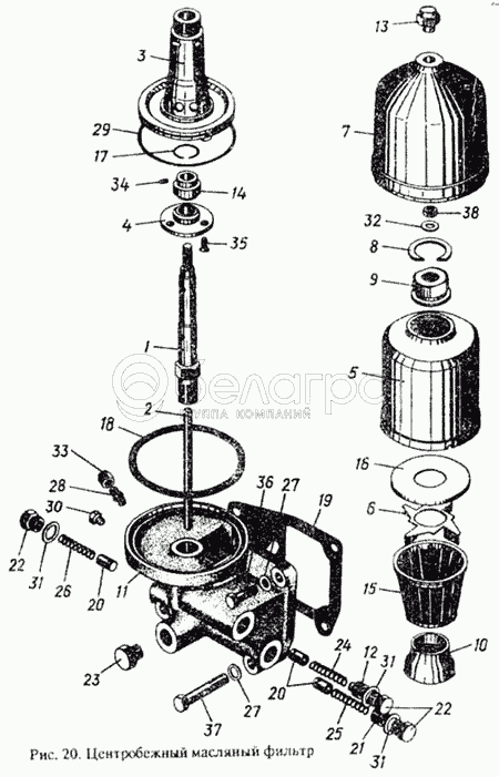 Ротор с осью (1-6, 8-10, 14-17, 29, 32, 34, 35, 38)