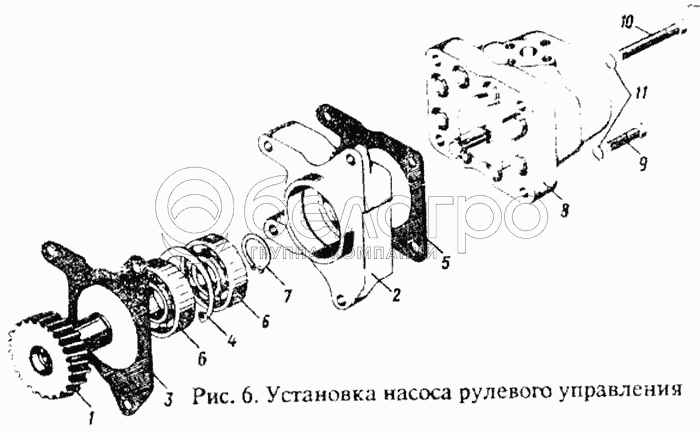 Каталог запасных частей к технике: ММЗ Д-242. Установка насоса рулевого управления