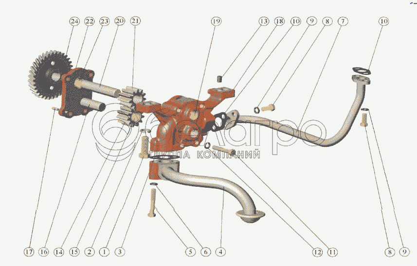 Каталог запасных частей к технике: ММЗ Д-242-72 (для МТЗ-821). Установка масляного насоса
