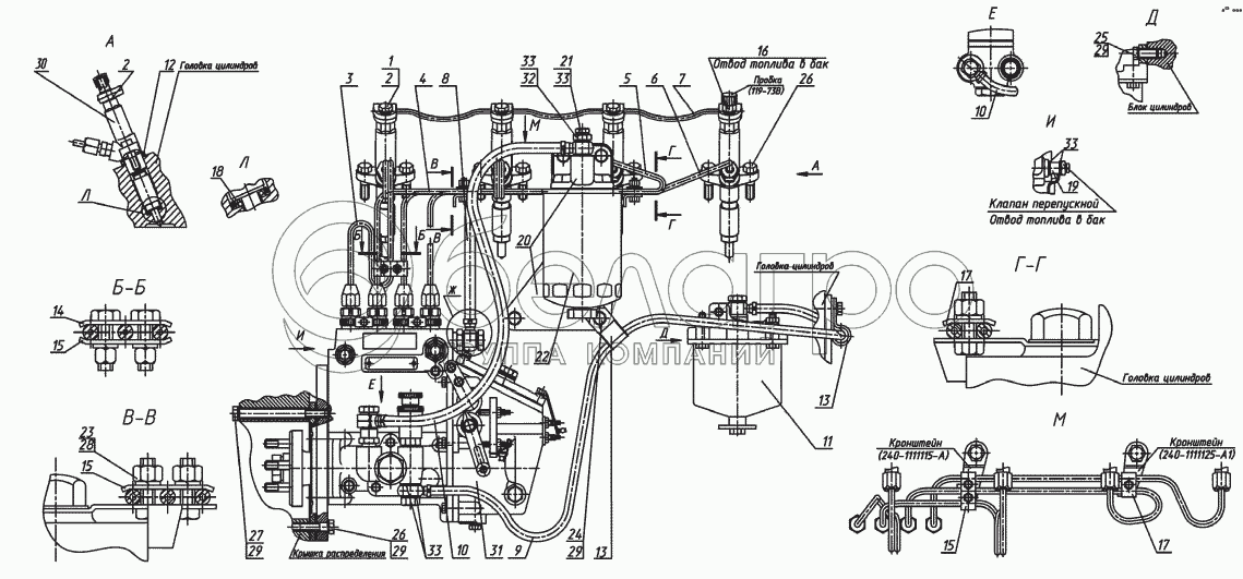 Каталог запасных частей к технике: ММЗ Д-242-72 (для МТЗ-821). Установка топливной аппаратуры