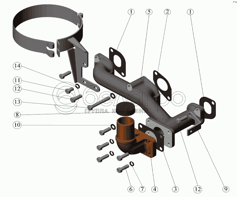 Каталог запасных частей к технике: ММЗ Д-242-72 (для МТЗ-821). Установка выпускного коллектора