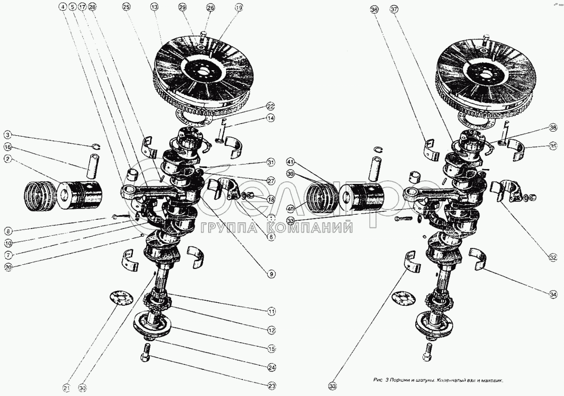 Каталог запасных частей к технике: ММЗ Д-243. Поршни и шатуны. Коленчатый вал и маховик