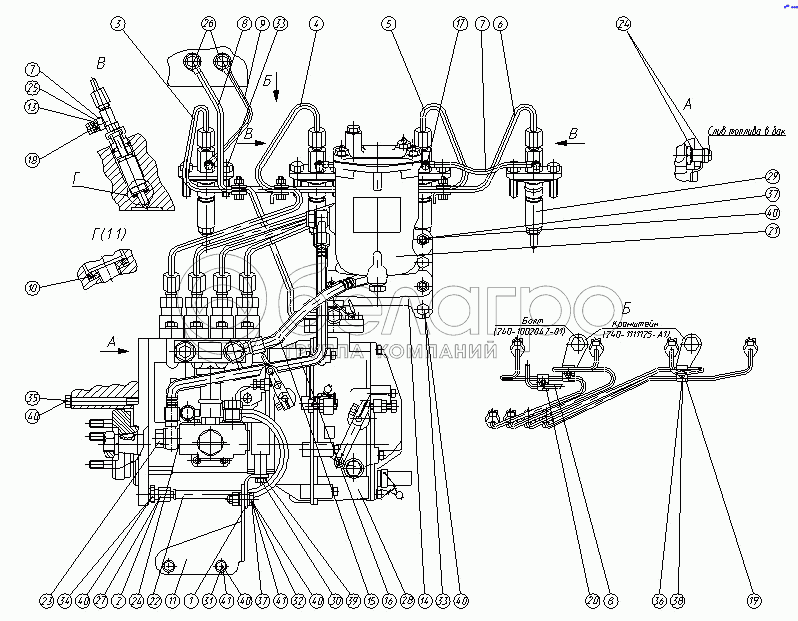 Каталог запасных частей к технике: ММЗ Д-245.30Е2-471. Топливные трубопроводы и установка топливной аппаратуры