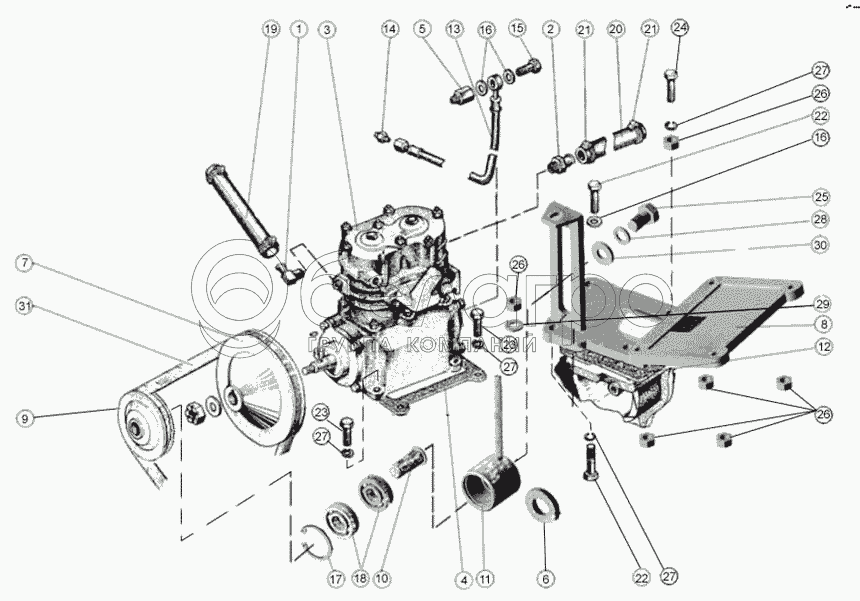 Каталог запасных частей к технике: ММЗ Д-245.30Е2-471. Установка компрессора