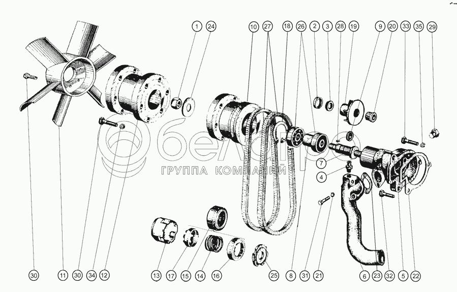 Каталог запасных частей к технике: ММЗ Д-245.30Е2-471. Установка водяного насоса, установка вентилятора