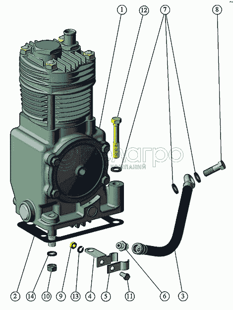 Каталог запасных частей к технике: ММЗ Д-245.30Е3 (для МАЗ). Установка компрессора
