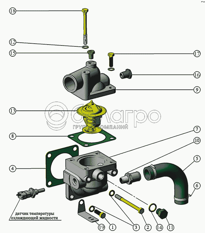 Каталог запасных частей к технике: ММЗ Д-245.30Е3 (для МАЗ). Установка корпуса термостата