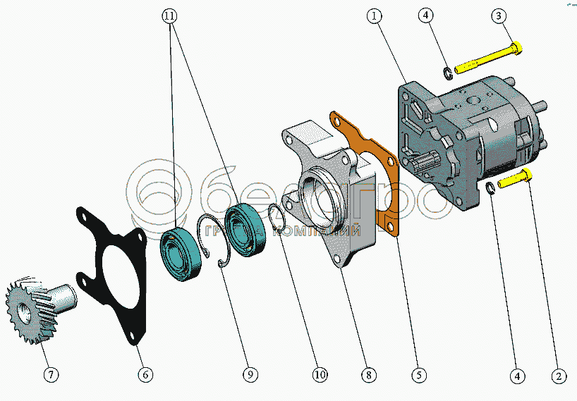 Каталог запасных частей к технике: ММЗ Д-245.30Е3 (для МАЗ). Установка насоса шестерённого