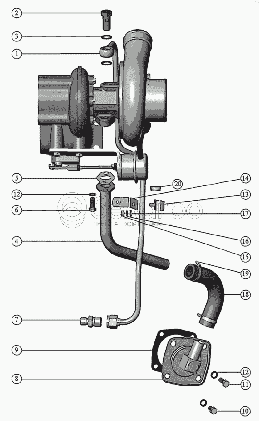 Каталог запасных частей к технике: ММЗ Д-245.35E4 (для МАЗ). Маслопроводы турбокомпрессора.