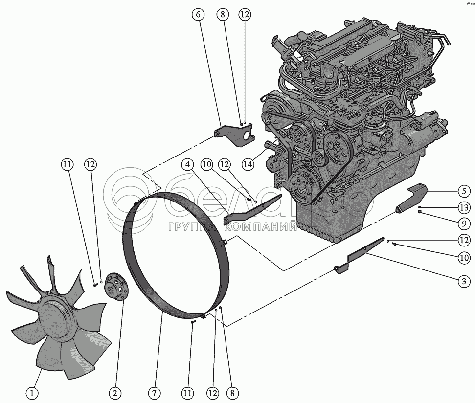 Каталог запасных частей к технике: ММЗ Д-245.35E4 (для МАЗ). Установка вентилятора.