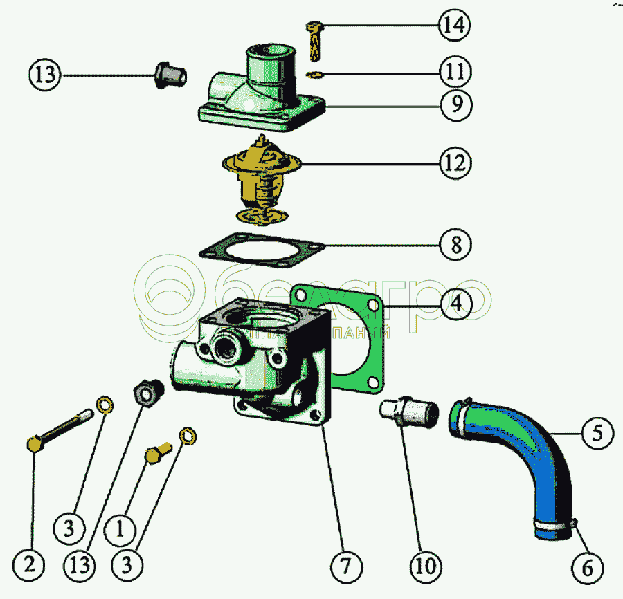 Каталог запасных частей к технике: ММЗ Д-245.43S3АМ-1871. Установка термостата