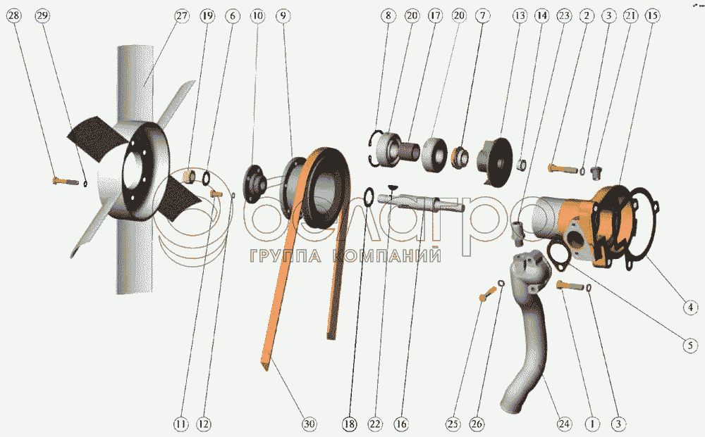 Каталог запасных частей к технике: ММЗ Д-245.5. Установка водяного насоса. Установка вентилятора