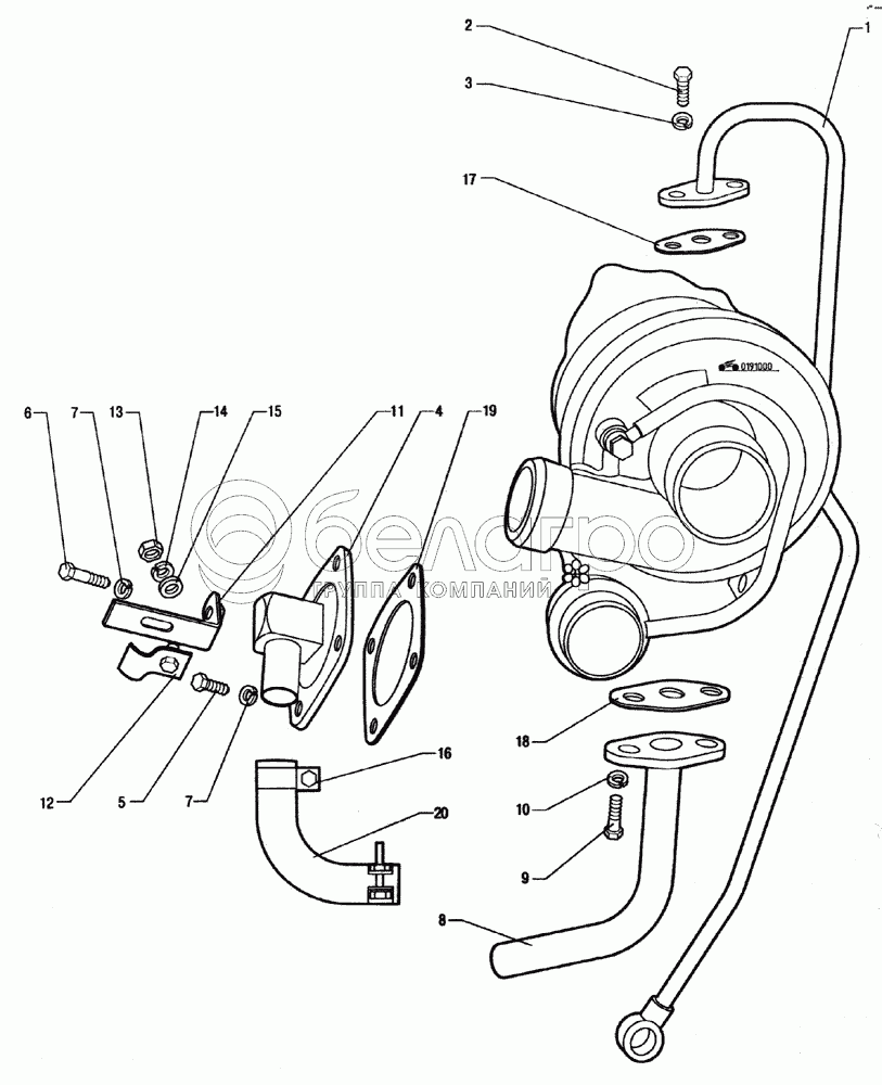 Каталог запасных частей к технике: ММЗ Д-245.7E2. Маслопроводы турбокомпрессора (245-1118000-Ж)