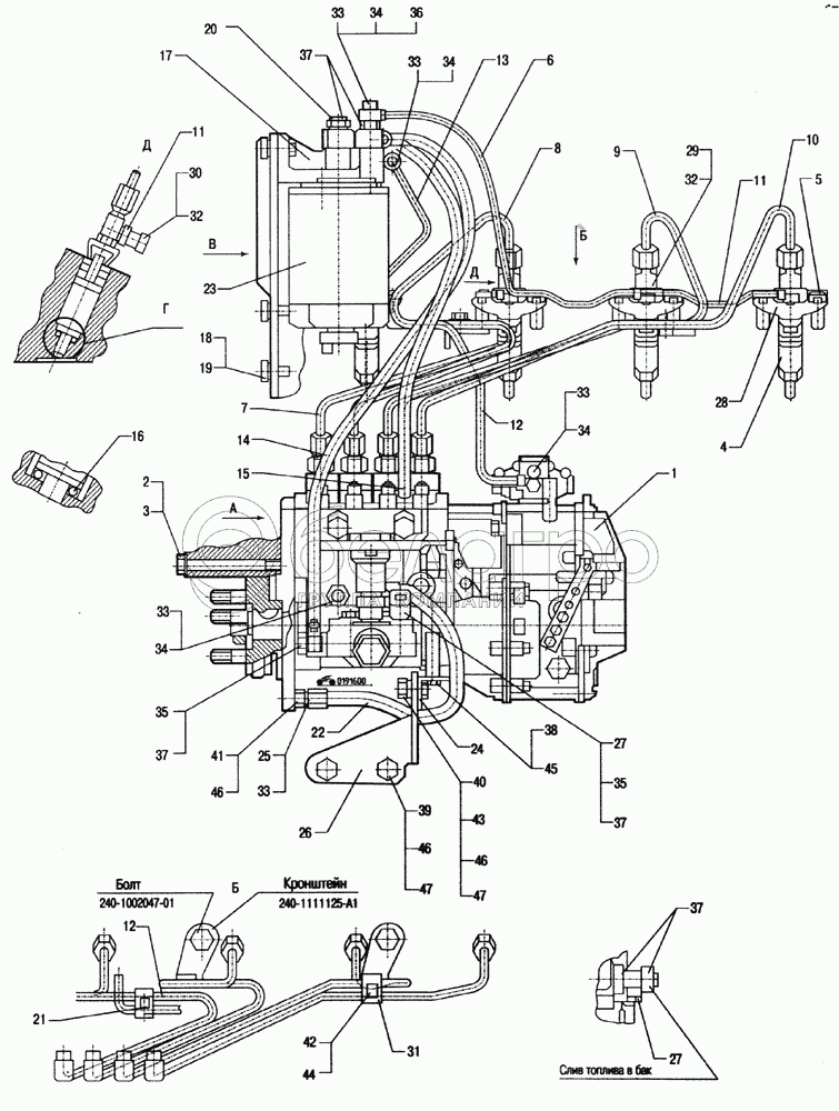 Каталог запасных частей к технике: ММЗ Д-245.7E2. Насос топливный (773.1111005-20.05Э2)
