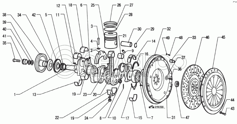 Каталог запасных частей к технике: ММЗ Д-245.7E2. Вал коленчатый. Поршень с шатуном. Маховик