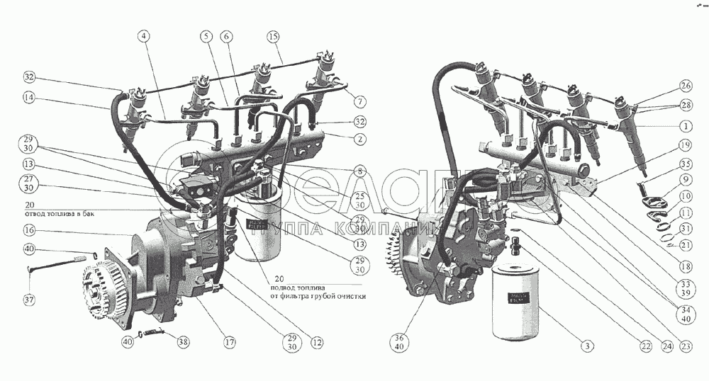 Каталог запасных частей к технике: ММЗ Д-245.7E3. Топливные трубопроводы и установка топливной аппаратуры
