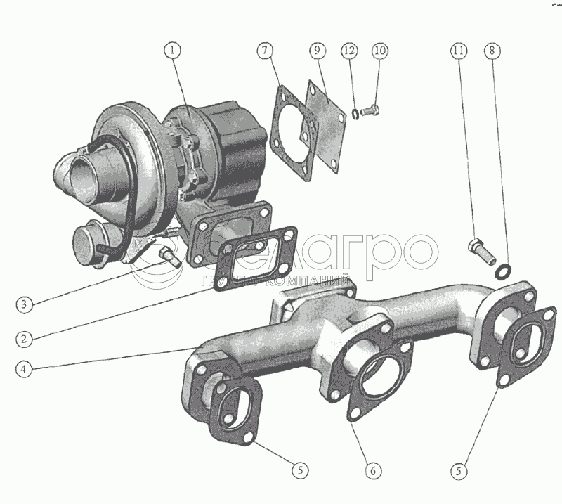 Каталог запасных частей к технике: ММЗ Д-245.7E3. Установка турбокомпрессора