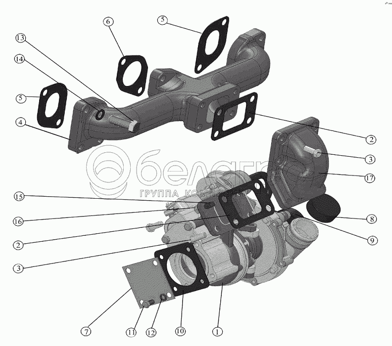 Каталог запасных частей к технике: ММЗ Д-245.7Е3, Д-245.9Е3. Установка турбокомпрессора.