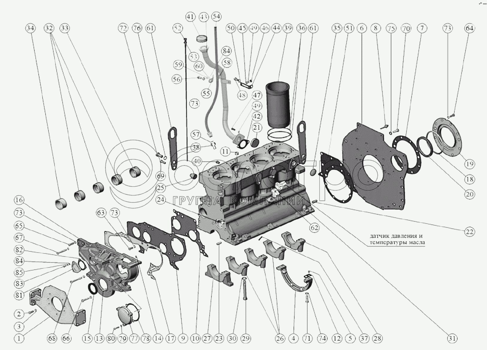 Каталог запасных частей к технике: ММЗ Д-245.7E4. Блок цилиндров. Установка передней опоры