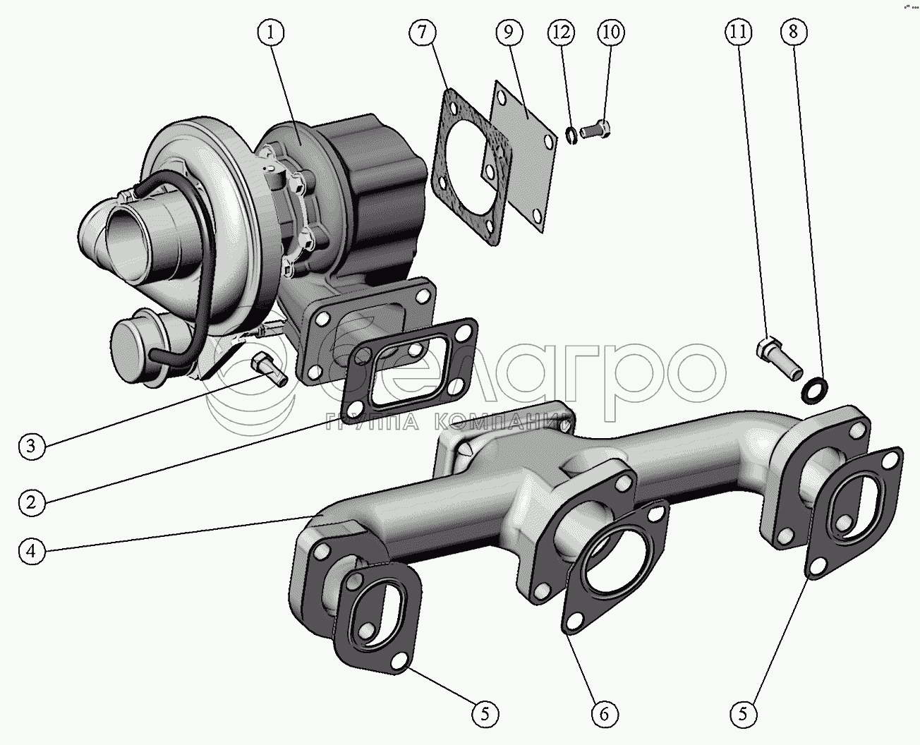 Каталог запасных частей к технике: ММЗ Д-245.7E4. Установка турбокомпрессора