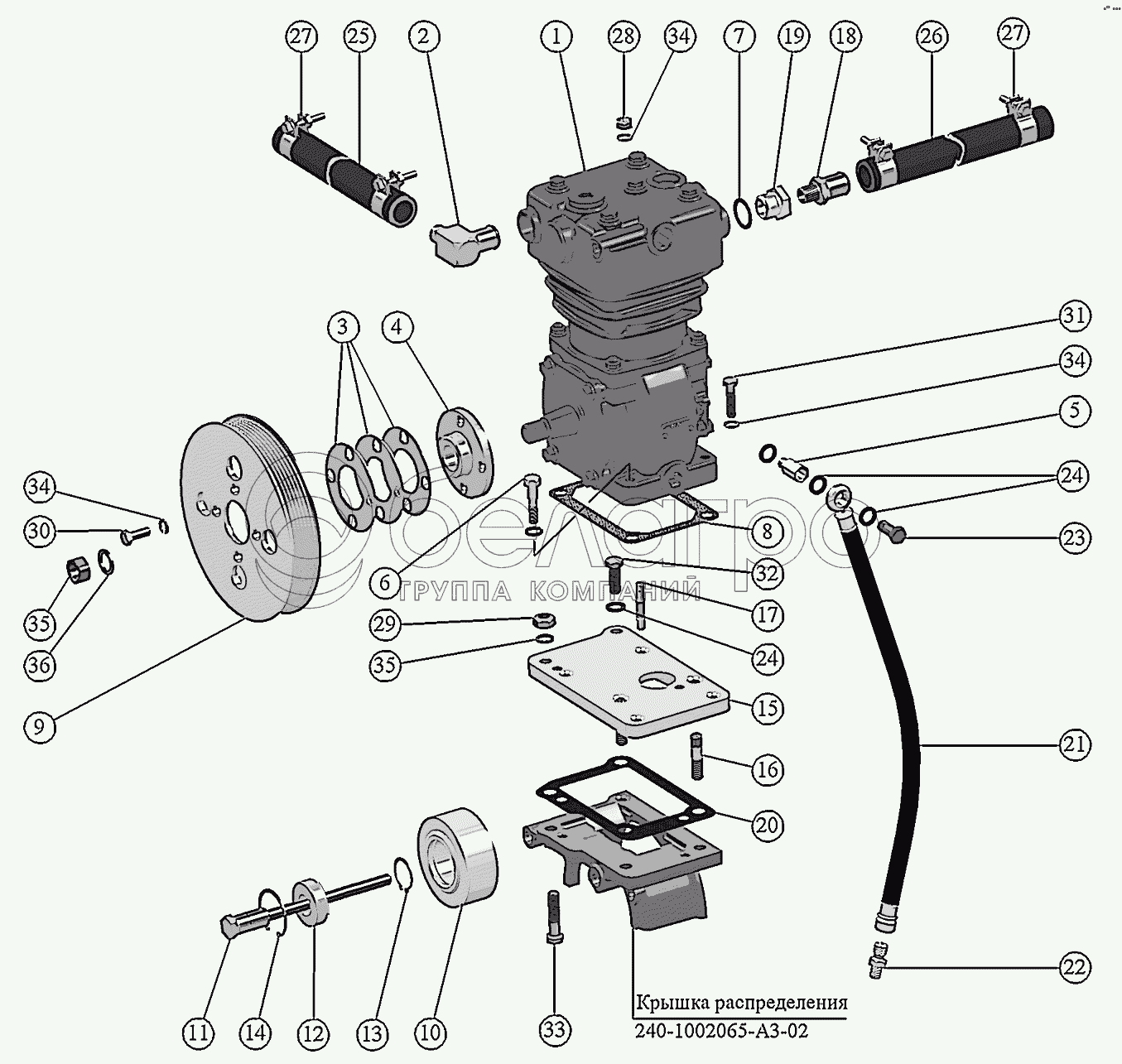 Каталог запасных частей к технике: ММЗ Д-245.9E4-4020 (для ПАЗ). Установка компрессора.