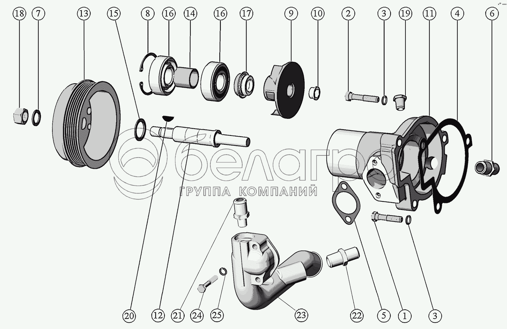 Каталог запасных частей к технике: ММЗ Д-245.9E4-4020 (для ПАЗ). Установка водяного насоса.