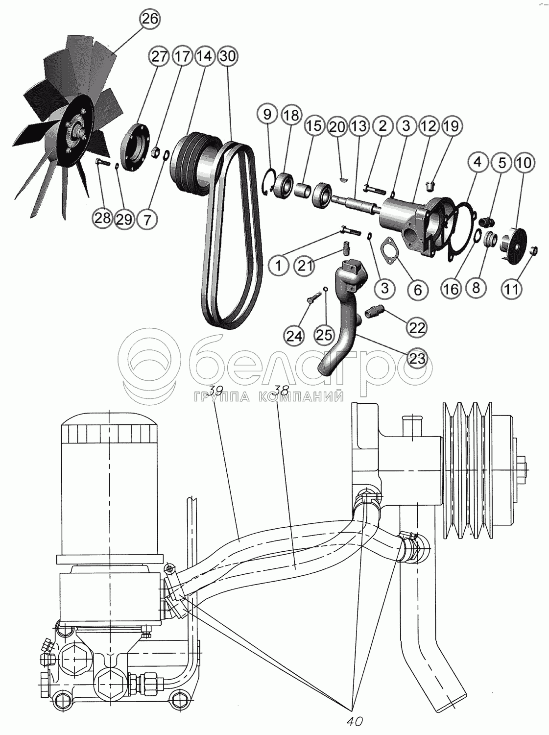 | 245-1307010-А1-11 Насос водяной МТЗ, Амкодор, (шкив 3 ручья) с доп. КГ1/2'' для ЖМТ (помпа), БЗА |