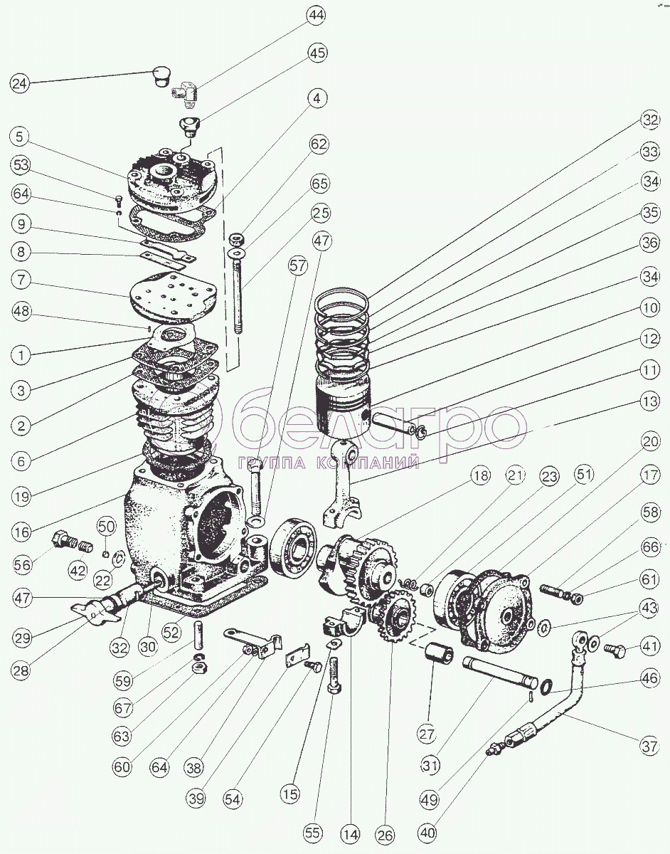 Каталог запасных частей к технике: ММЗ Д-245S2. Пневмокомпрессор и его установка